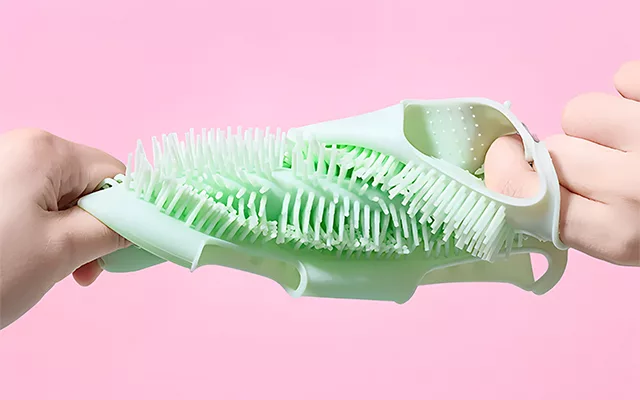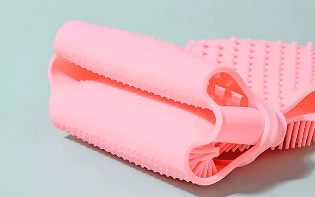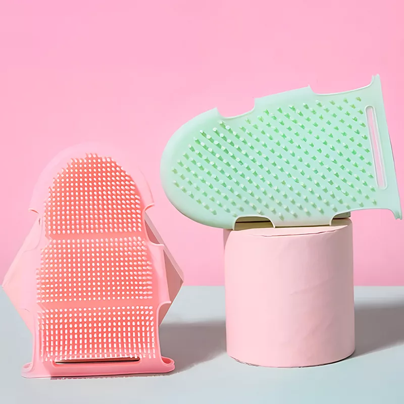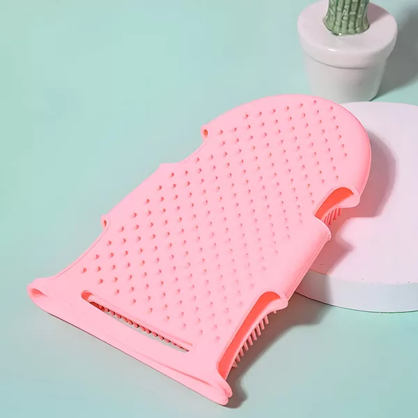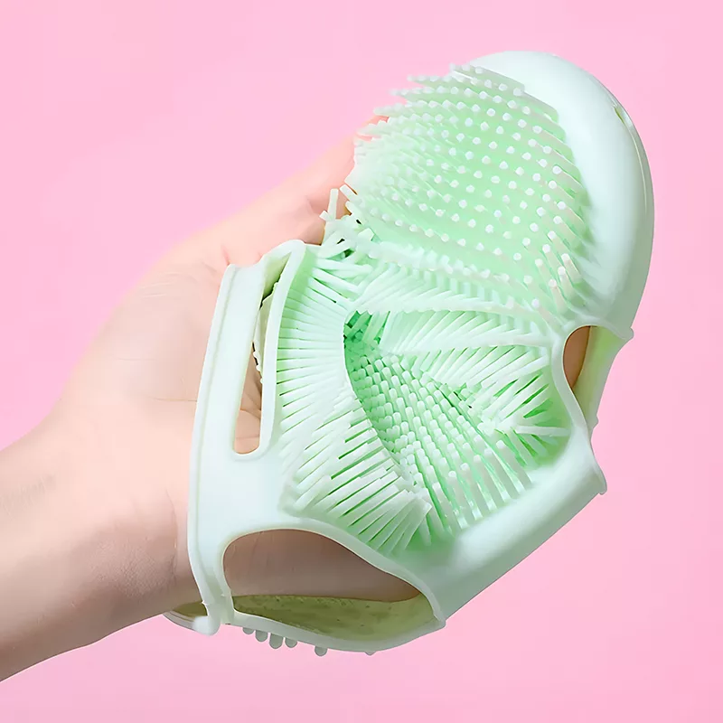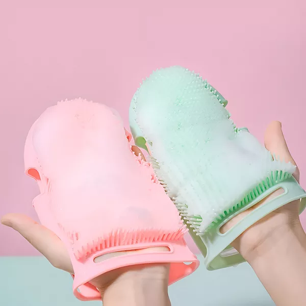 Our silicone glove fits snugly into your hand and stays in place, even in the shower.