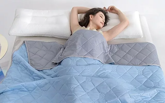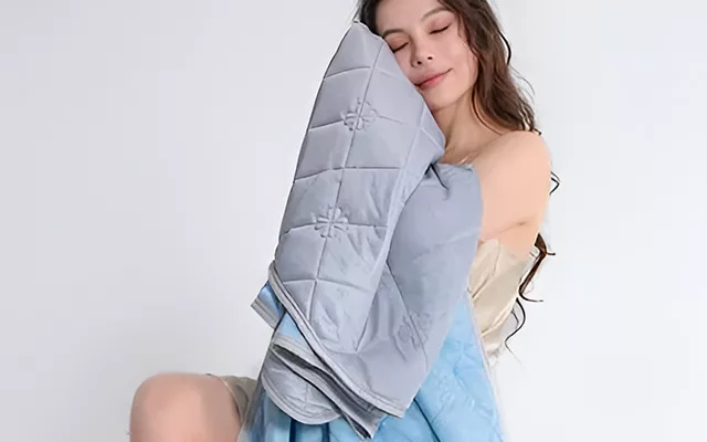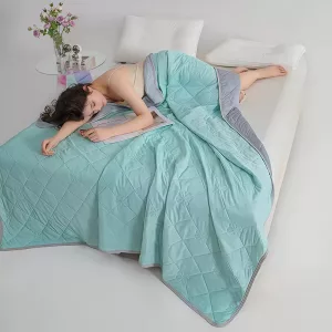 The cooling blanket is really comfy at night and helps me fall asleep fast. I love how lightweight it feels and it never bothers my sensitive skin.