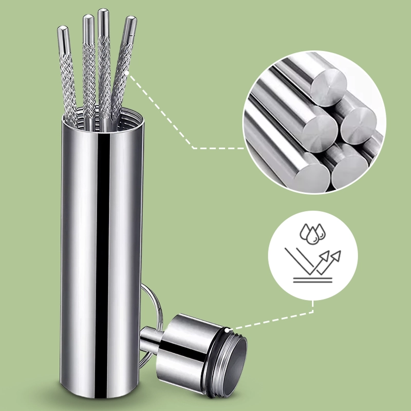 Way better than wooden toothpicks that break. I just pop it back in the metal case and clip it to my backpack. Saves so much waste.