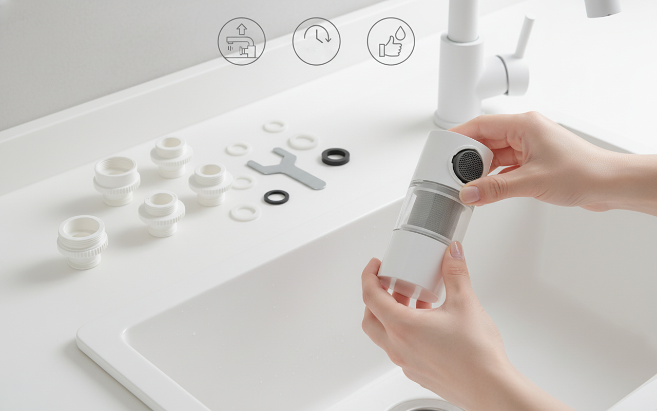 So happy I don’t need to buy bottled water! This filter really makes our tap clean and crisp. Splash-proof water saves mopping time.