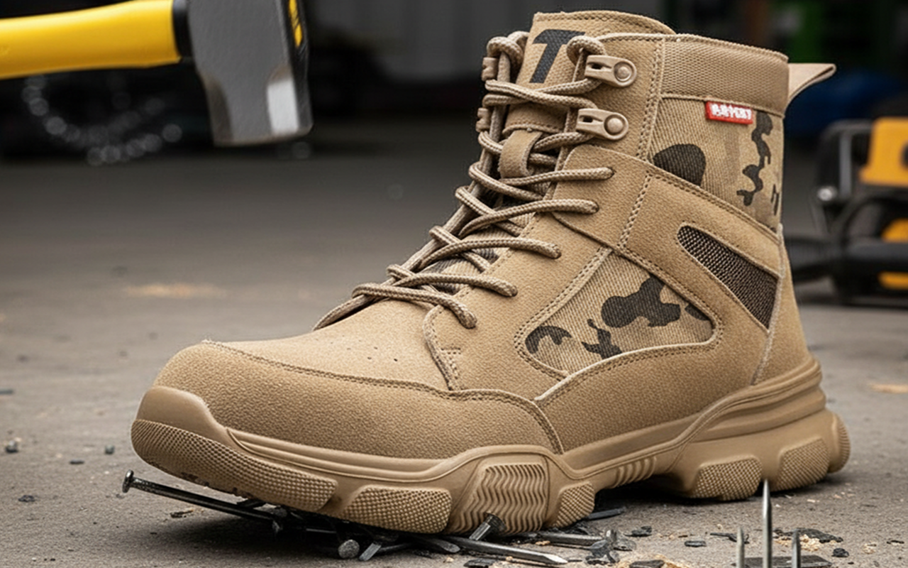 Reinforced steel guards against sharp drops or crushing impacts. Strong sole resists punctures from nails or debris with ease.