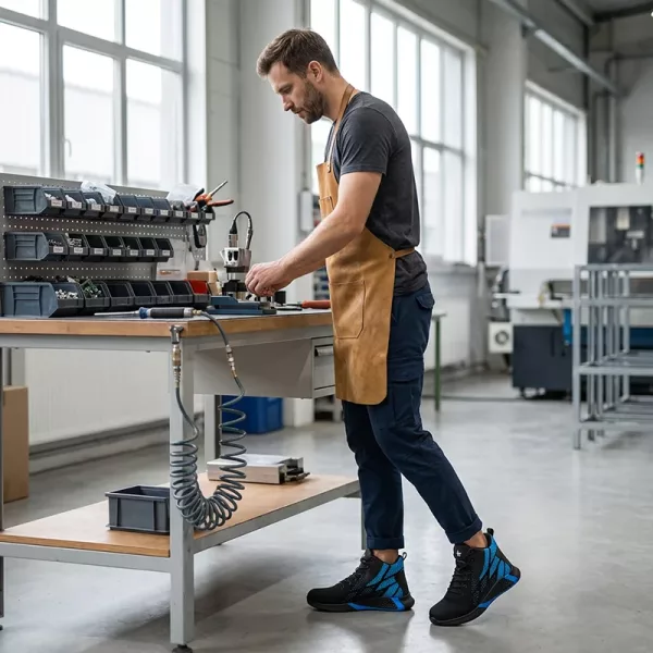 I’m a delivery driver hauling heavy boxes. These steel-toe shoes feel light, protect when something slips from the truck, and the shock absorption keeps my lower back from screaming.