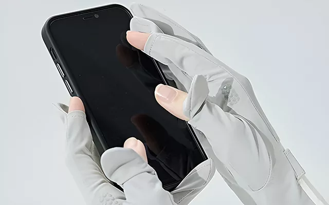 The open fingertips allow you to use devices without removing your gloves. Stay connected while enjoying reliable sun protection.