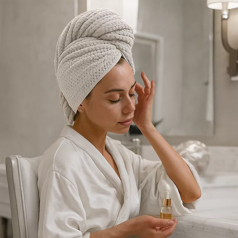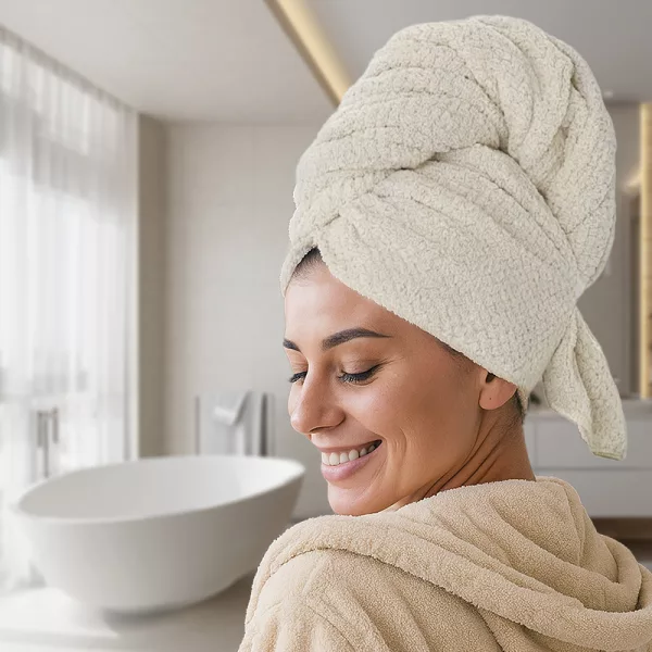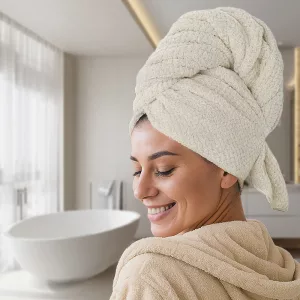 The microfiber is amazing—gentle on my head and my hair dries super fast! No more soggy spots or heavy towels falling off. Wouldn’t go back.