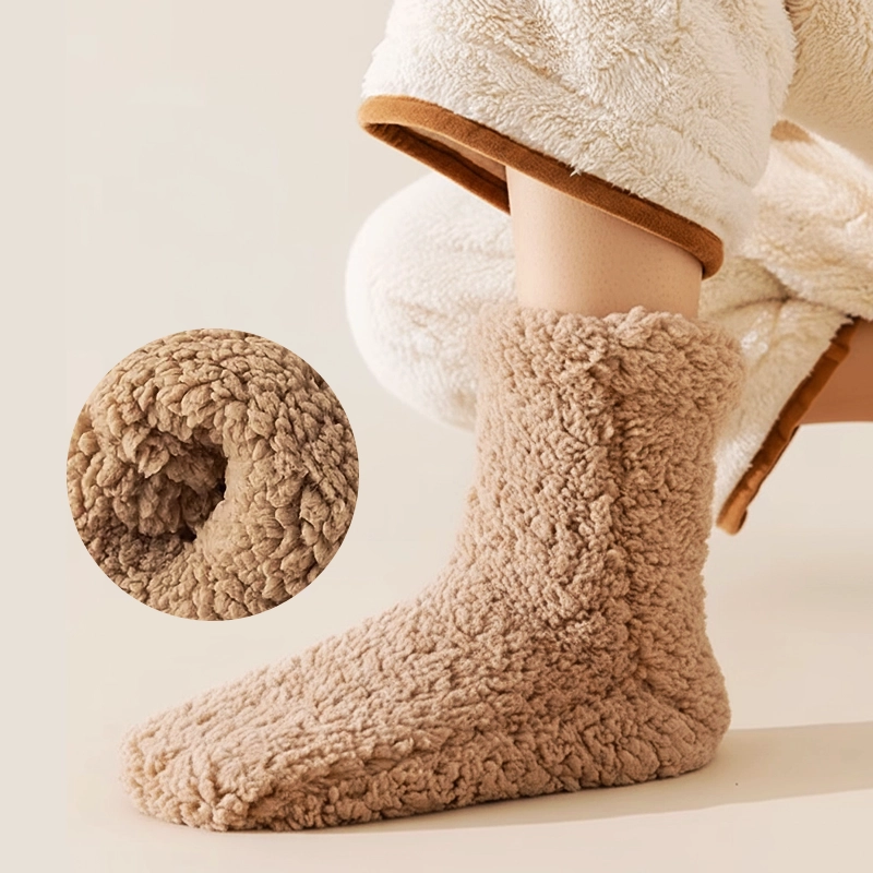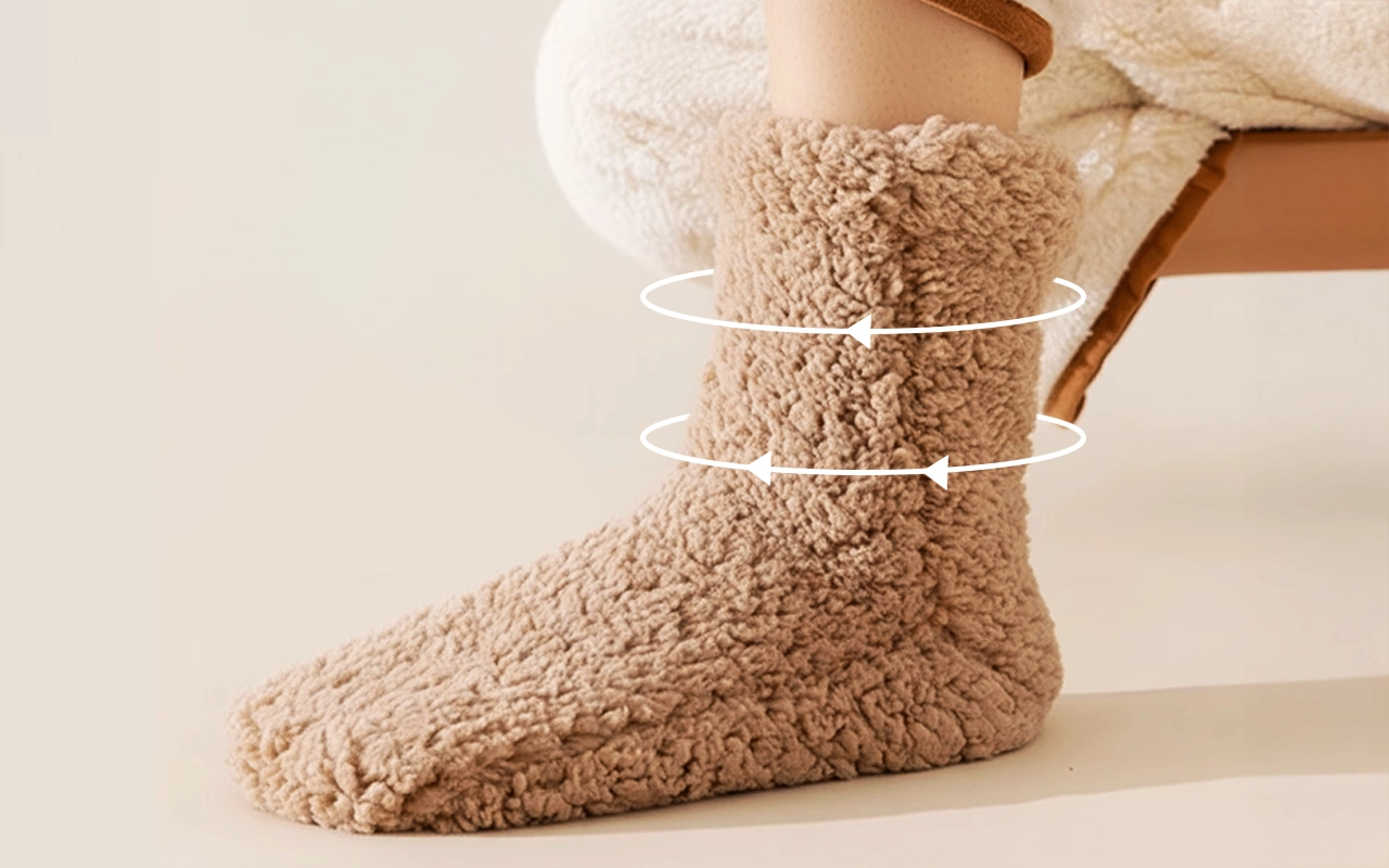 Thick plush fabric locks in heat for lasting comfort. Feet remain snug and protected even on the coldest mornings.