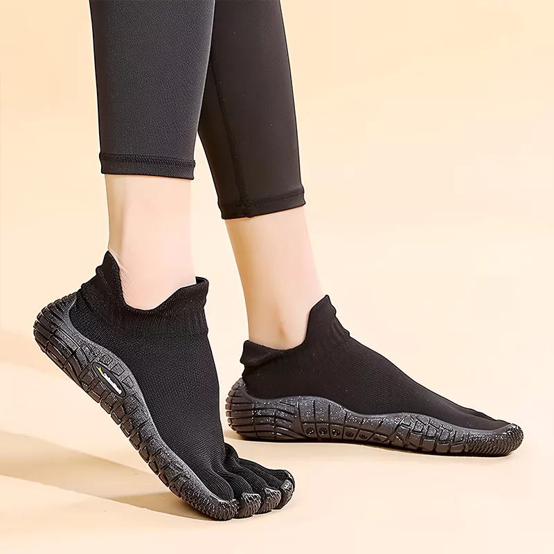 Each toe is separated, improving balance and reducing strain. Such a design also helps minimize friction, preventing blisters and irritation.