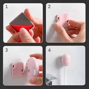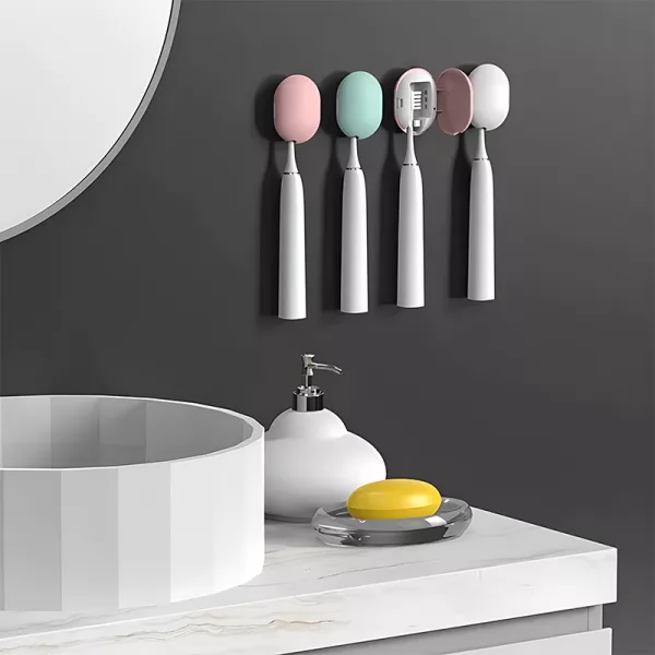 This toothbrush holder easily attaches to smooth surfaces, saving valuable counter space.
