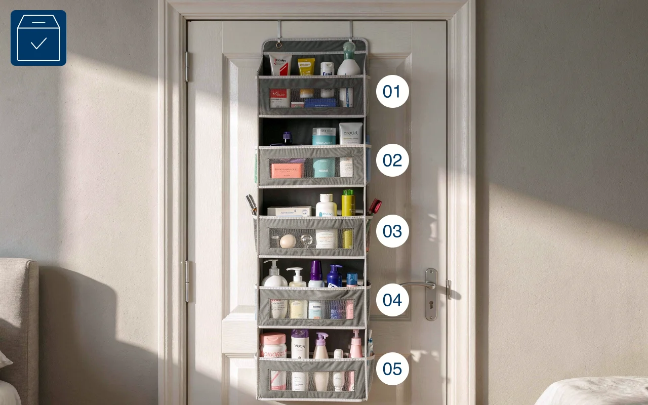 Using this on my bedroom door gave me extra storage. I keep my chargers, books, and notebooks right there now, so my desk stays clean.
