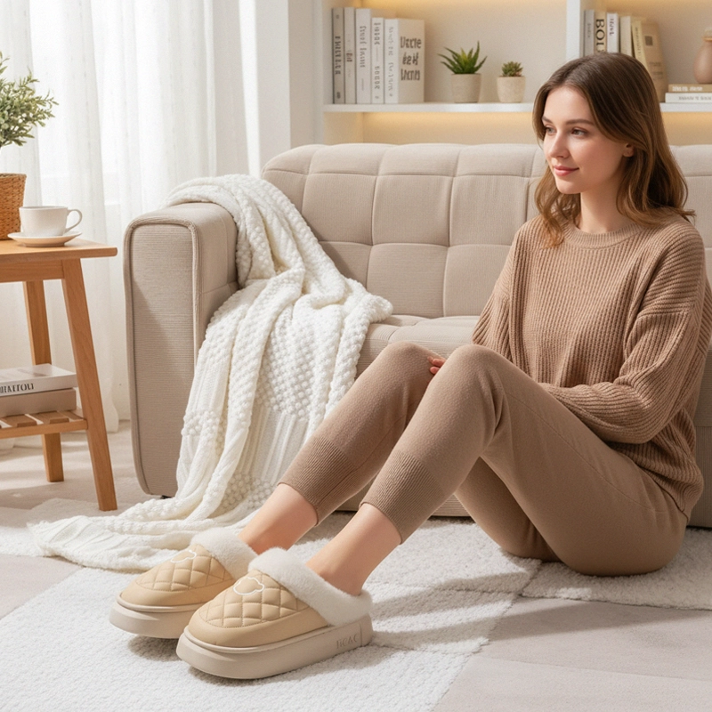 These slippers keep my feet warm all day, and the soft fuzzy lining feels super cozy I wear them reading or watching TV at home.