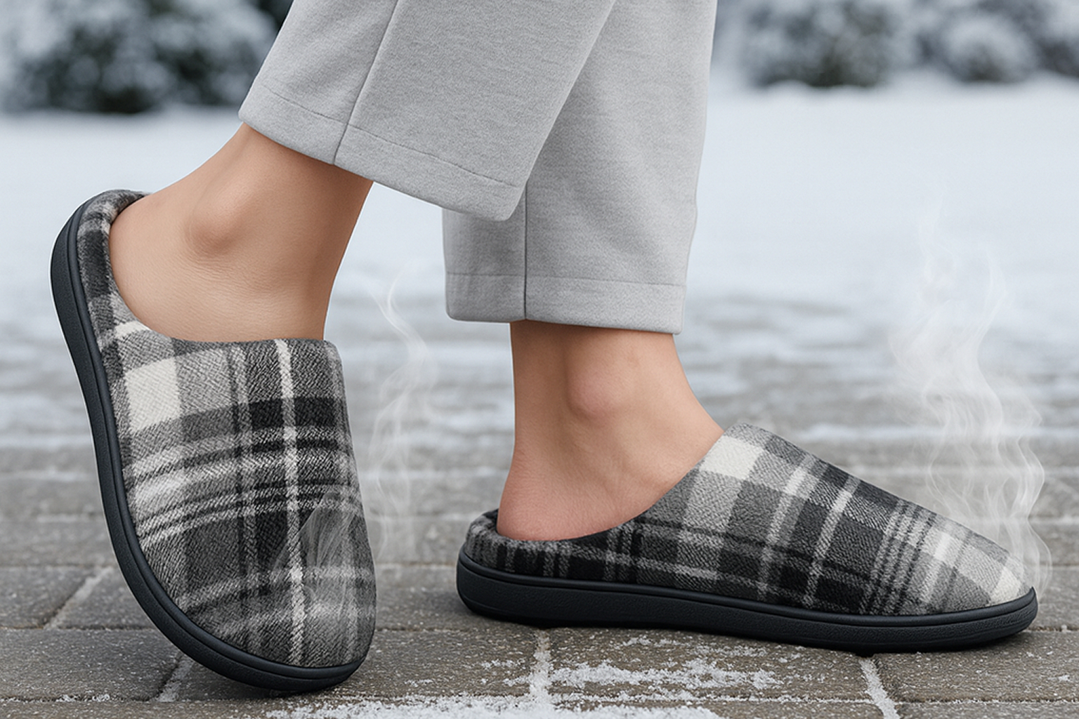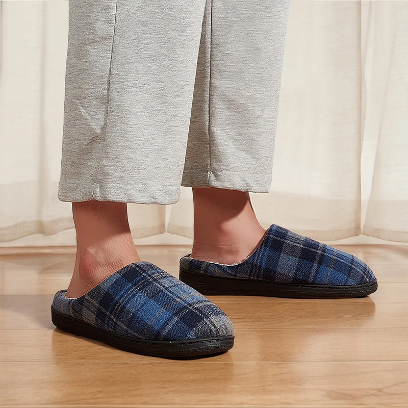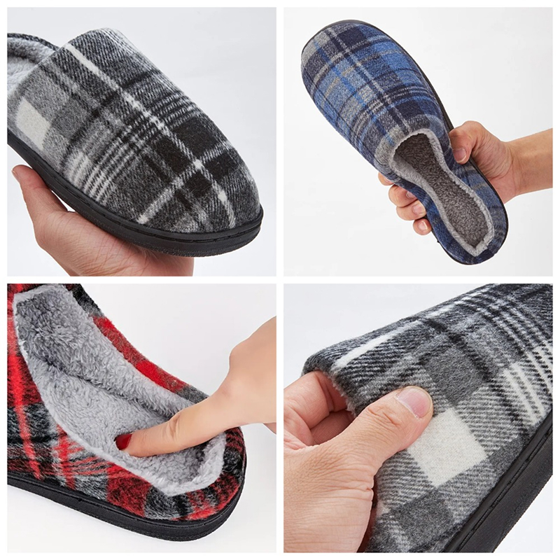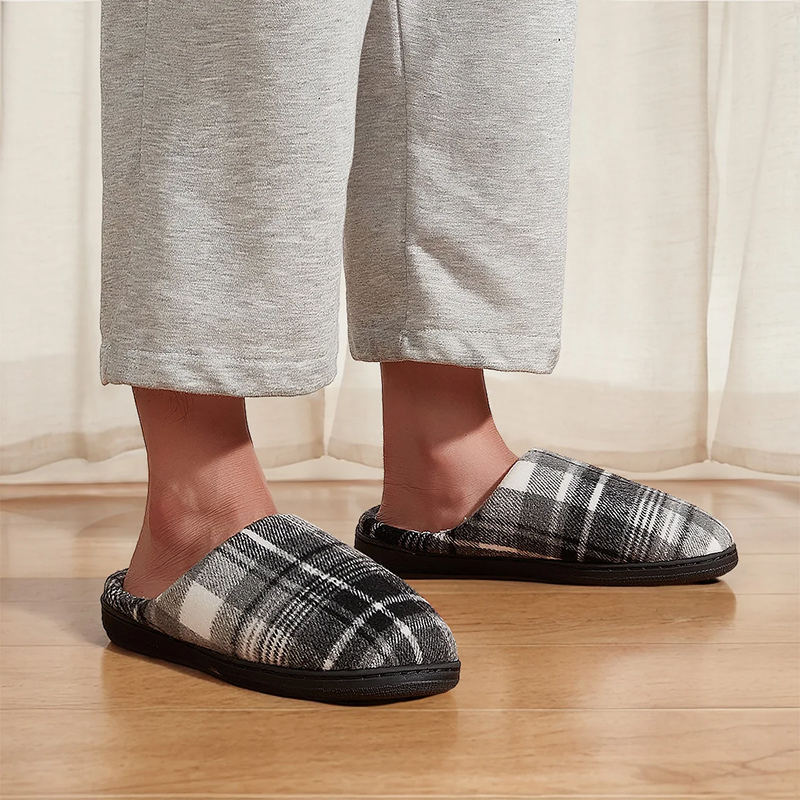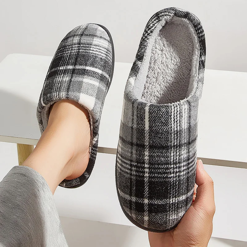 Wearing these plaid slippers after work is the best. Soft inside, super easy to put on, and my heels feel totally relaxed now.
