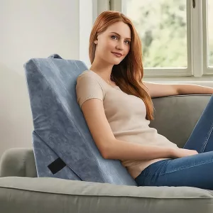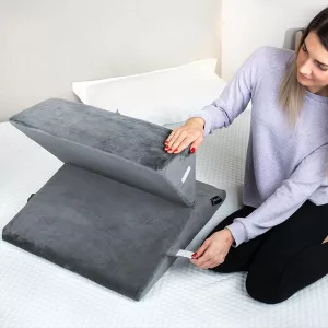Streaming your favorite show or reading from bed? Place the short, wide end of your wedge pillow on your mattress with the long, flat side against your wall or headboard. You’ll be able to sit up straight, reclining slightly, at the most ergonomic angle for watching TV or curling up with your favorite book or magazine. Rather than leaning against a cold, hard wall or headboard, the cushion of your wedge pillow will hug you back, giving you a comfortable position to enjoy your downtime.