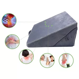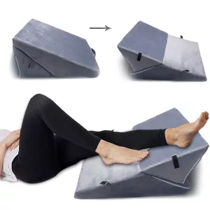 Placing the wedge pillow under your knees can relieve pressure on your lower back and improve the legs’ circulation, which helps with tired muscles and sore, swollen feet. Correcting issues with circulation prevents further health complications like varicose veins and deep vein thrombosis (DVT).