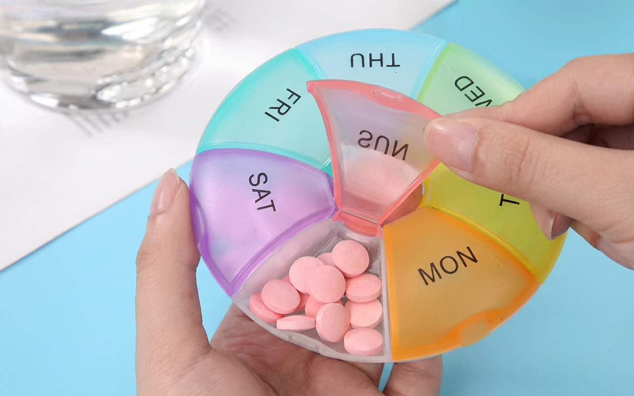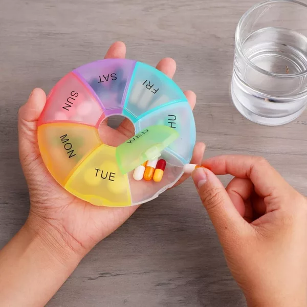 You can organise various pills for each day of the week. Each compartment has its own tight-fitting lid.