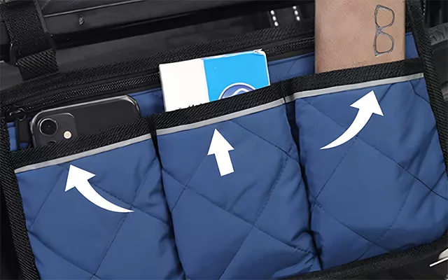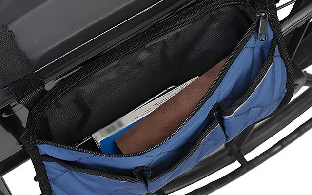 Ortorex wheelchair bag attaches securely and stays in place. Multiple pockets keep items tidy and easy to find. Reflective trim boosts visibility for safety at night.