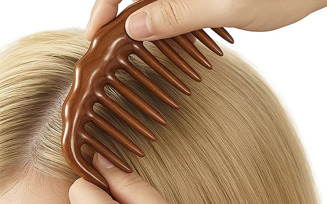 Ortorex comb glides smoothly, making daily care gentle and easy. Crafted from golden sandalwood, it protects both strands and scalp. Its thoughtful design prevents breakage, leaving hair looking tidy and healthy.
