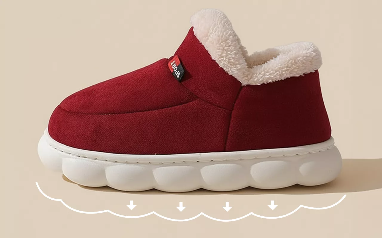 Insulating plush material shields feet from freezing floors. Enjoy relaxing evenings feeling snug and cosy at home.