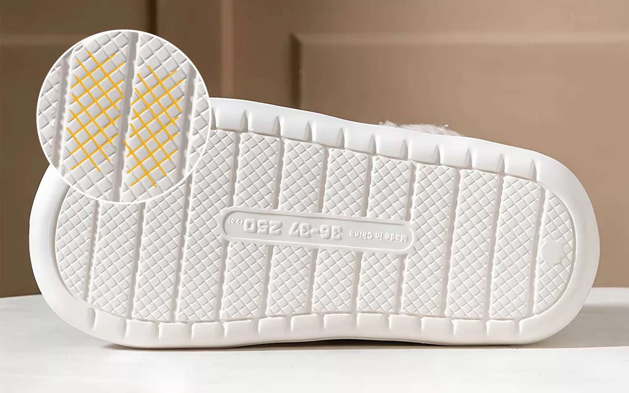 Love how the fluffy slippers hug my toes. Walking around my apartment feels safer with the grippy bottoms. Best part of my chilly mornings.