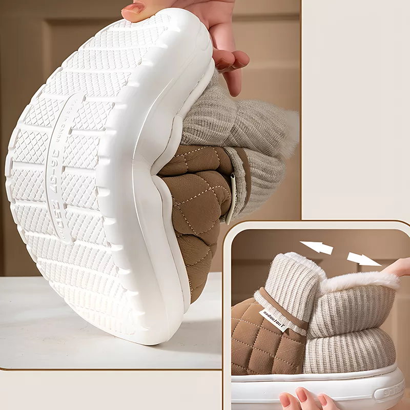 Warm and comfy! Soles keep me safe from slips.