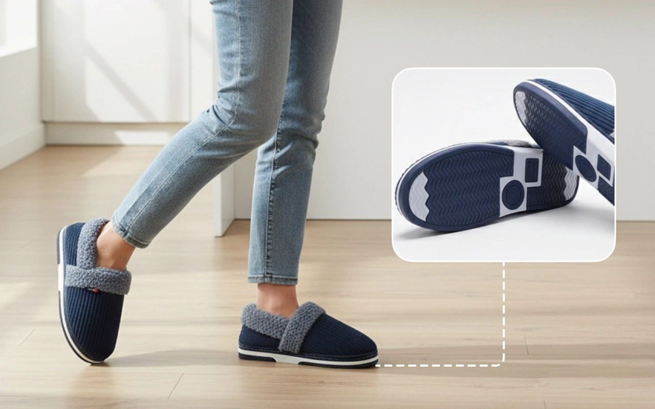 Grip-pattern base helps prevent slips on smooth floors. Stay steady and confident every time you wear Ortorex slippers.