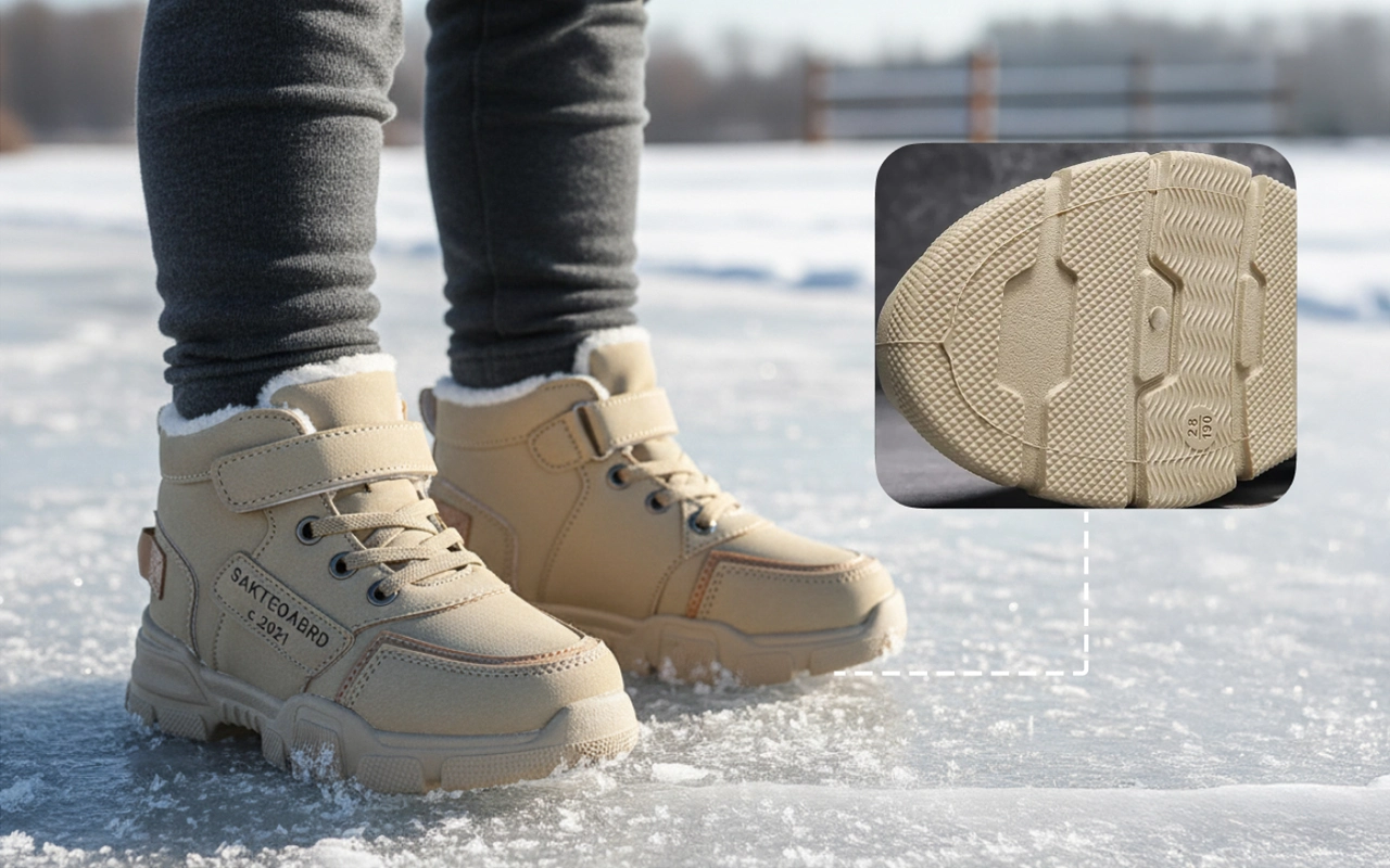 Specially designed soles grip tightly to prevent unwanted falls. Kids can run, jump, and walk safely across slippery surfaces outside.