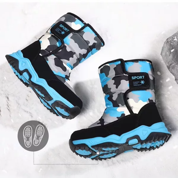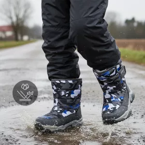 Chunky rubber outsole stops slipping on icy or wet ground. Peace of mind for parents while children run and play outside.