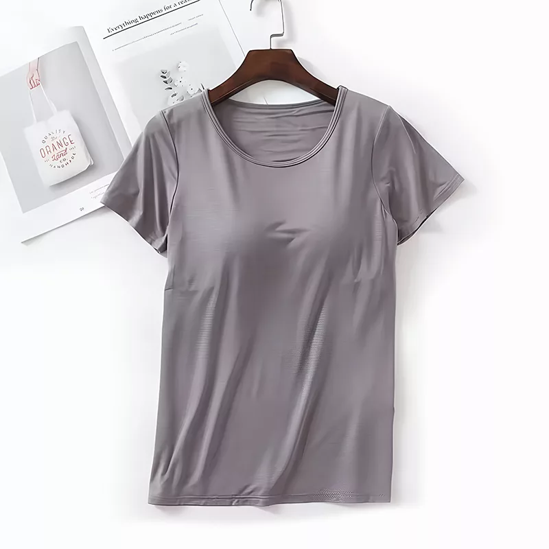 This shirt changed my gym game! The built-in bra is extremely supportive, and I never feel restricted.