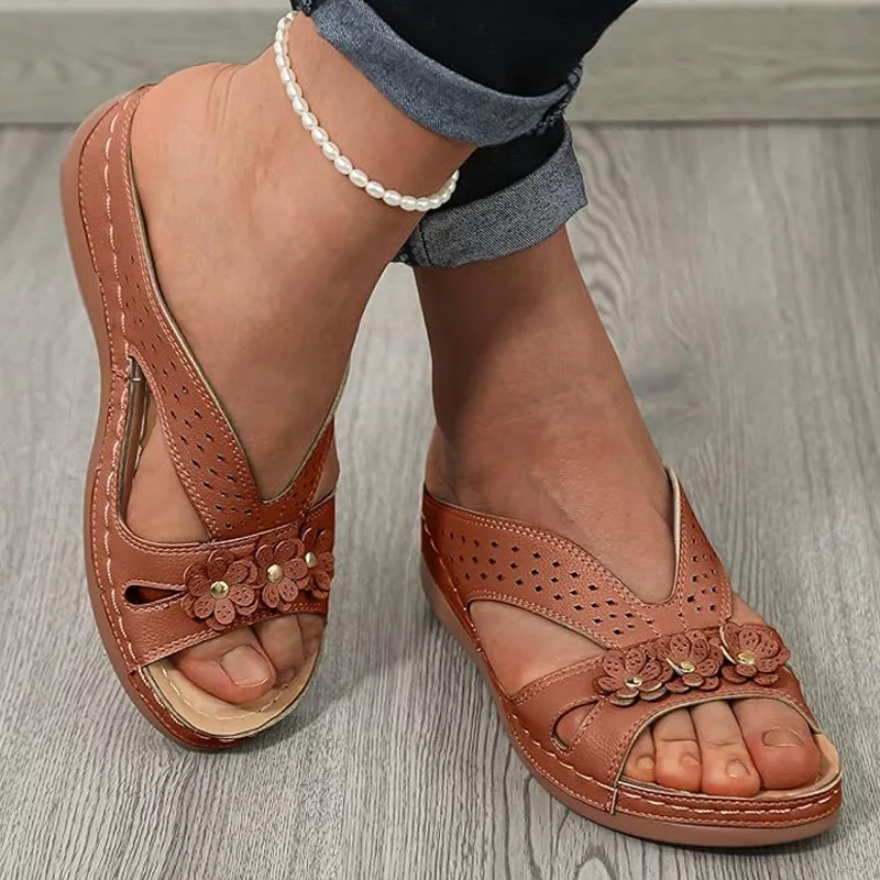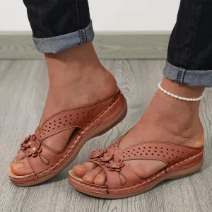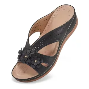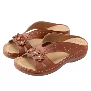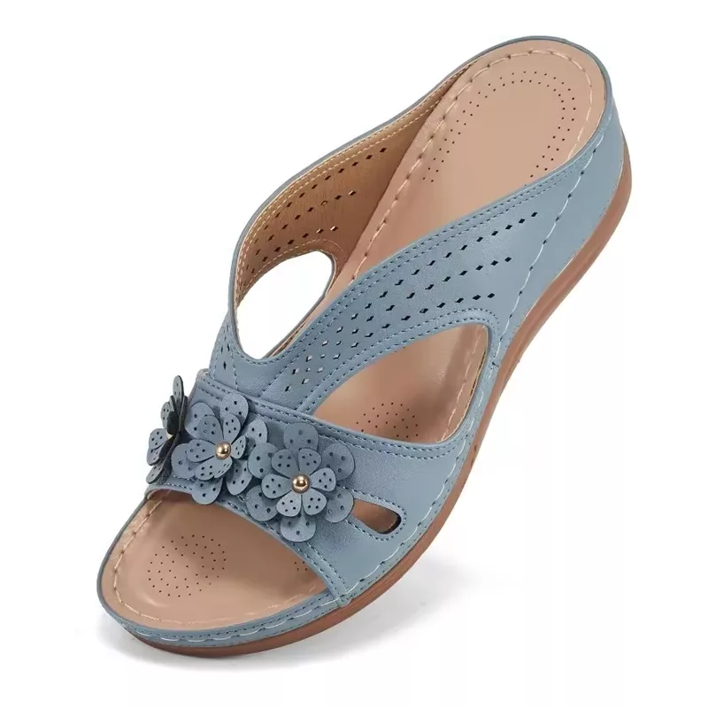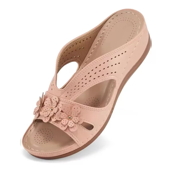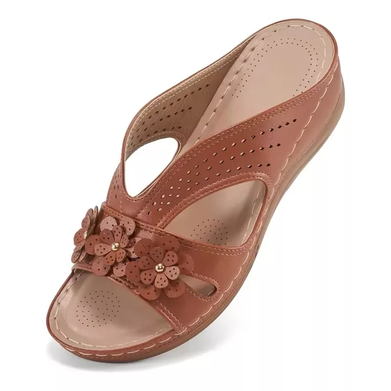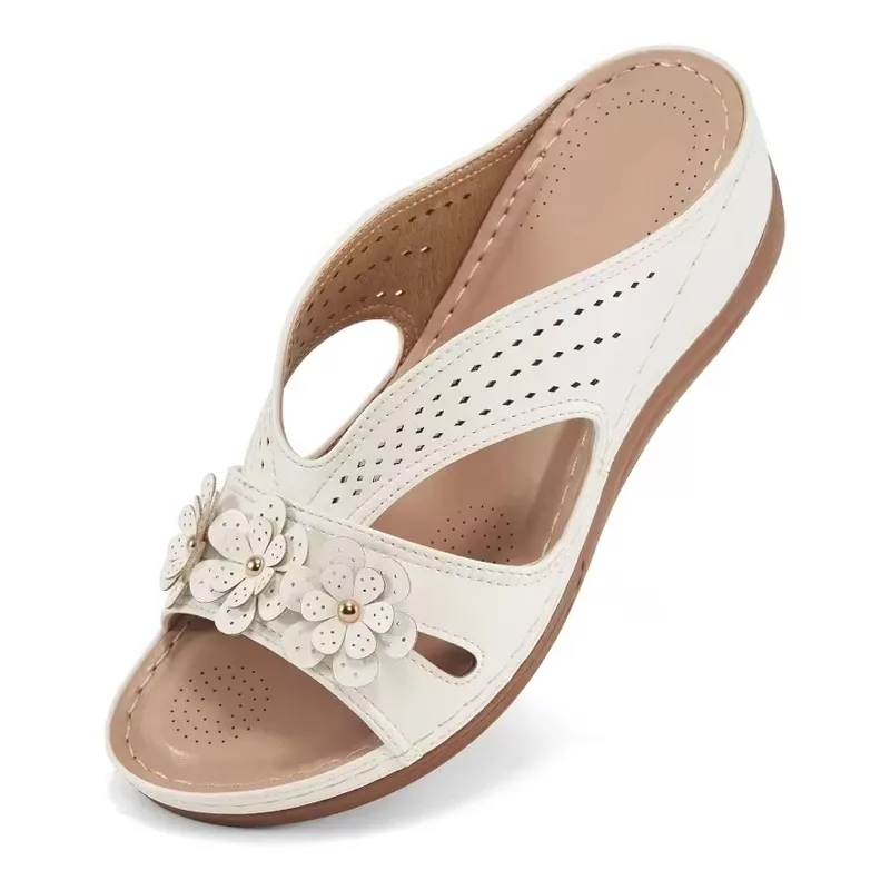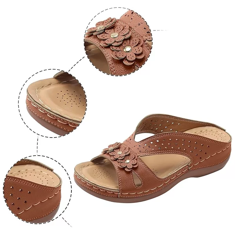 The Ortorex wedge slippers feature delicate floral details that exude elegance. They are easy to pair with dresses, shorts, or jeans.