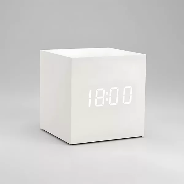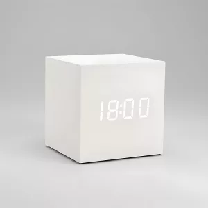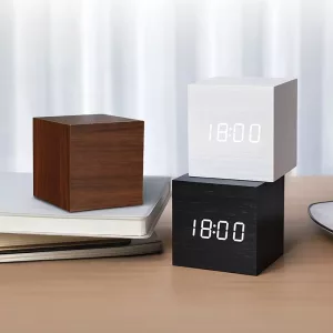 The cube clock looks awesome on my bedside table. I love waking up to three alarms and checking the temperature every morning. Super easy to use too!