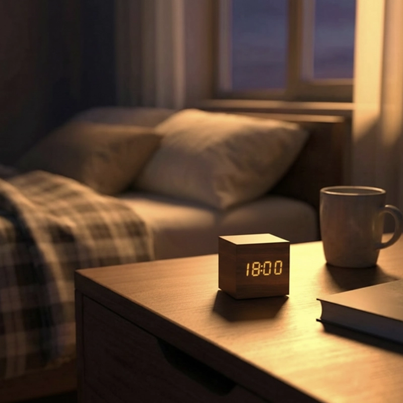 I really like the soft display—I can read the time even in the dark without hurting my eyes. The wood vibes make my room cozy.