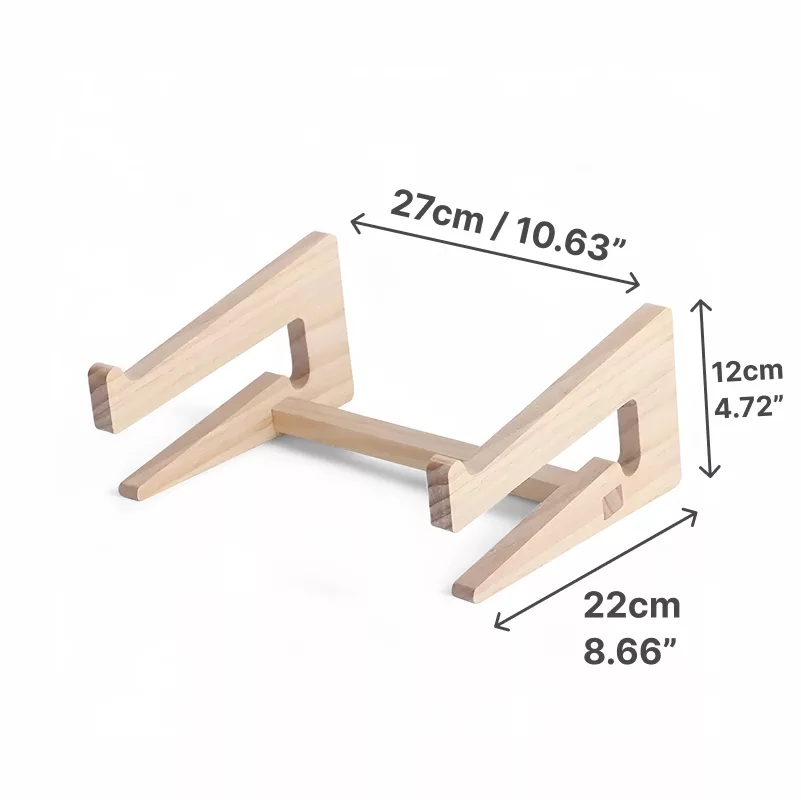 Our wooden holder is compatible with most laptop sizes and keyboard types.
