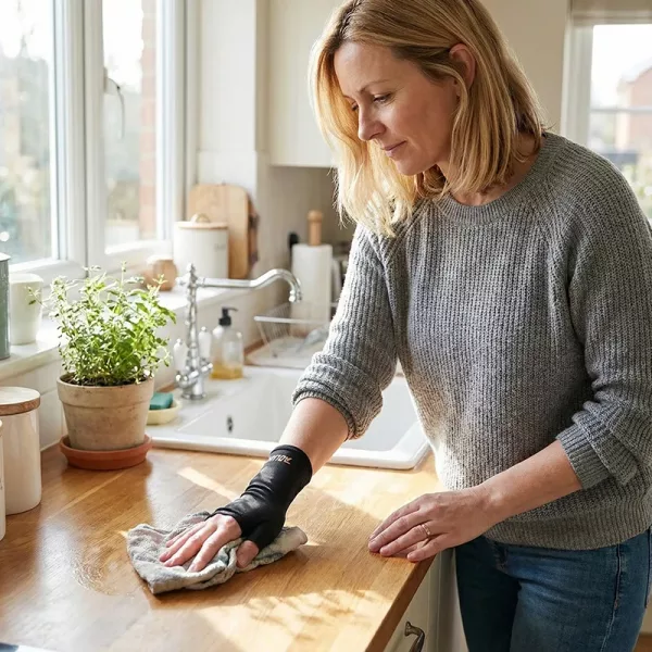 I keep this wrist wrap at my desk. When my hand starts to ache, a quick warm session relaxes everything and the fabric stays comfy for hours.